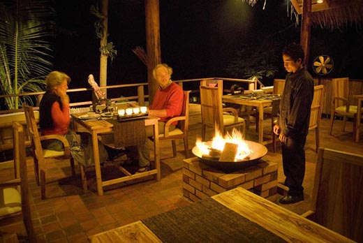 In the evening, why not choose a romantic candlelit dinner in a quiet corner of our garden hidden by a palisade of bamboo, or on the terrace of your room overlooking the resort and its surroundings, or at the edge of the river with the magnificent back-drop of the green forest serenaded by the harmonious and relaxing sounds of Mother Nature herself…Your meal will be served wherever you prefer; alternatively why not let your hosts surprise you by serving you in an unexpected and secret setting known only to them.